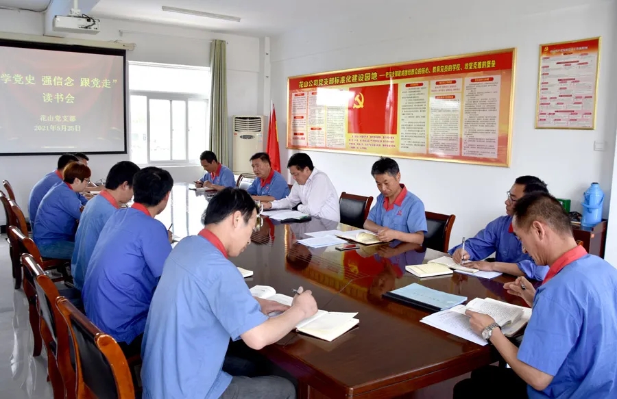 5月25日下午,花山公司黨支部第一黨小組召開“學黨史、強信念、跟黨走”讀書會,集團公司黨委書記、董事長吳福勝以黨小組普通黨員身份參加。花山黨支部委員、領導班子成員受邀參加并分享黨史學習體會。