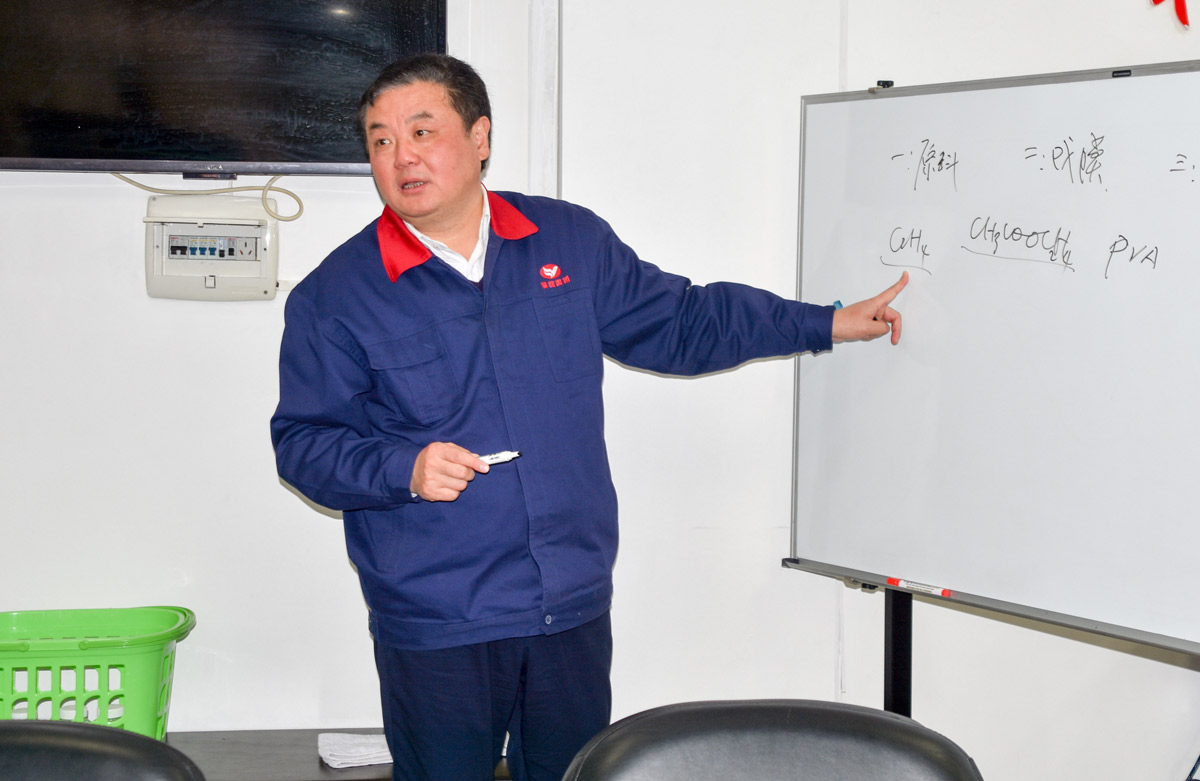 會后,葉傳柏前往PVA膜分廠,實(shí)地察看了產(chǎn)品生產(chǎn)過程。