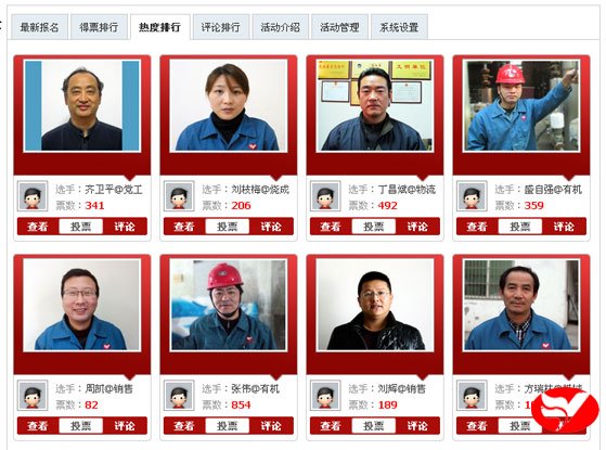 在昨天的得票前八強(qiáng)中,有機(jī)分廠張偉繼續(xù)跑,同時(shí)出現(xiàn)熱電分廠楊輝的身影;在人氣排行中,黨工部齊衛(wèi)平保持先,機(jī)械設(shè)備公司方瑞林?jǐn)D進(jìn)前八強(qiáng)。